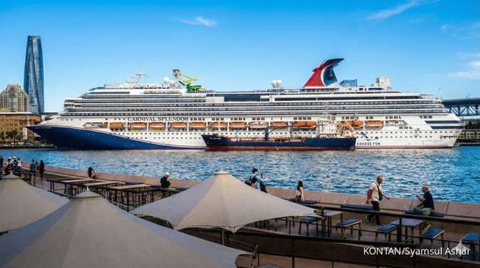 "Lagi asik jalan santai turun dari The Rocks, eh langsung dihadang si raksasa Carnival Splendor! Keliatannya baru banget selesai unloading penumpang nih. Minggu sore jam 15.30 dia bakal cabut lagi bawa rombongan baru ke Tasmania buat 5 hari. Duh, rasanya pengen banget nyelip masuk koper biar bisa ikut ke Hobart!"